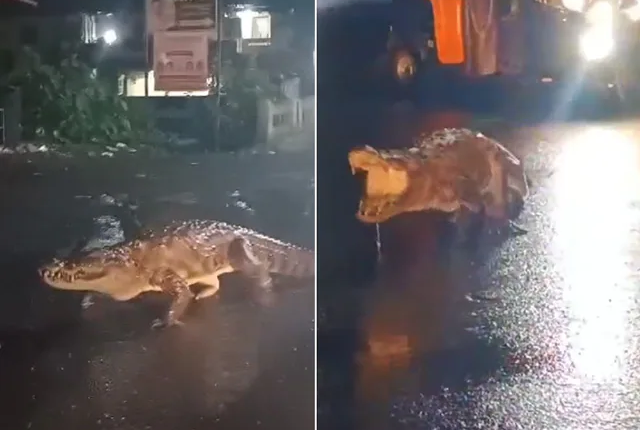 ന്യൂഡല്ഹി: കനത്ത മഴയ്ക്കുശേഷം റോഡിലൂടെ ഇഴയുന്ന ഒരു ഭീമൻ മുതലയുടെ ദൃശ്യങ്ങളാണ് സോഷ്യല് മീഡിയയില് വൈറലാകുന്നത്. ഡൽഹിയിലെ ചിപ്ലൂണ് എന്ന സ്ഥലത്തുളള റോഡിലാണ് മുതലയെ കണ്ടത്.