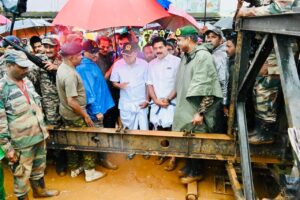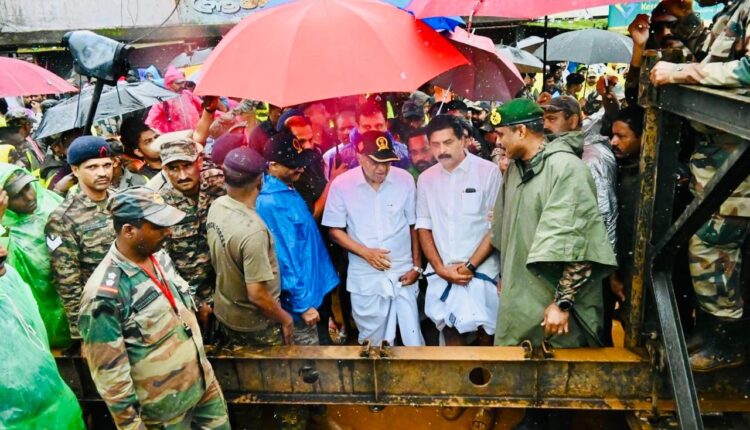 ചൂരൽമലയിൽ നിന്നും നിർമ്മിക്കുന്ന താൽക്കാലിക പാലത്തിന്റെ (ബെയ്ലി പാലം) നിർമ്മാണ പുരോഗതി മുഖ്യമന്ത്രി വിലയിരുത്തി. ബെയ്ലി പാലത്തിന്റെ നിർമ്മാണം ദ്രുതഗതിയിൽ പൂർത്തിയാകുന്നതായി അധികൃതർ മുഖ്യമന്ത്രിയെ അറിയിച്ചു. മന്ത്രിമാരായ കെ രാജൻ, റോഷി അഗസ്റ്റിൻ, എ.കെ ശശീന്ദ്രൻ, പി.എ മുഹമ്മദ് റിയാസ്, കെ കൃഷ്ണക്കുട്ടി, ഒ.ആർ കേളു, നിയമസഭാ സ്പീക്കർ എ.എൻ ഷംസീർചീഫ് സെക്രട്ടറി ഡോ വി. വേണു, ജില്ലാ കളക്ടർ ഡി ആര് മേഘശ്രീ എന്നിവർ മുഖ്യമന്ത്രിക്കൊപ്പം ഉണ്ടായിരുന്നു