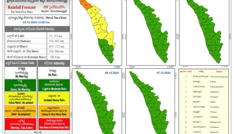 വിവിധ ജില്ലകളിൽ കേന്ദ്ര കാലാവസ്ഥവകുപ്പ് ഓറഞ്ച്, മഞ്ഞ അലർട്ടുകൾ പ്രഖ്യാപിച്ചിരിക്കുന്നു.