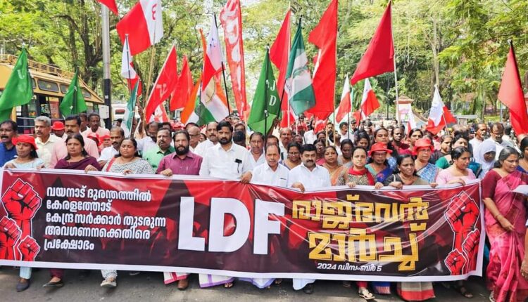 വയനാട് ദുരന്തം നടന്നിട്ട് മാസങ്ങളായിട്ടും ഒരു സഹായവും അനുവദിക്കാത്ത കേന്ദ്ര സർക്കാരിനെതിരെ സംസ്ഥാനത്തുടനീളം പ്രതിഷേധം ഇരമ്പി. LDF നേതൃത്വത്തിൽ ജില്ലകളിൽ നടന്ന പ്രതിഷേധ മാർച്ചുകളിൽ ആയിരങ്ങൾ പങ്കെടുത്തു.