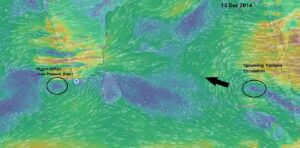 ലക്ഷദ്വീപിനും മാലിദ്വീപിനും മുകളിലായി ന്യുനമർദ്ദം (Low Pressure Area) സ്ഥിതിചെയ്യുന്നു. അടുത്ത 24 മണിക്കൂറിനുള്ളിൽ പടിഞ്ഞാറു ദിശയിൽ നീങ്ങി ദുർബലമാകാൻ സാധ്യത. ഡിസംബർ 14 ന് തെക്കൻ ആൻഡമാൻ കടലിനു മുകളിൽ ചക്രവാതചുഴി രൂപപ്പെടാൻ സാധ്യത. മറ്റന്നാളോടെ ന്യുനമർദ്ദമായി ശക്തി പ്രാപിച്ചു തുടർന്നുള്ള 48 മണിക്കൂറിൽ തമിഴ്നാട് തീരത്തേക്ക് നീങ്ങാൻ സാധ്യത. കേരളത്തിൽ അടുത്ത 5 ദിവസം ഒറ്റപ്പെട്ട ഇടിമിന്നലോടു കൂടിയ നേരിയ / ഇടത്തരം മഴയ്ക്കു സാധ്യത. ഒറ്റപ്പെട്ട സ്ഥലങ്ങളിൽ ഡിസംബർ 17,18 തീയതികളിൽ ശക്തമായ ശക്തമായ മഴയ്ക്കും സാധ്യതയെന്ന് കേന്ദ്ര കാലാവസ്ഥ വകുപ്പ് അറിയിക്കുന്നു