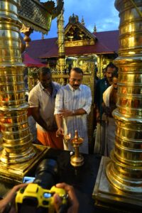 സന്നിധാനത്ത് കാർത്തികദീപം ദേവസ്വം ബോർഡ് പ്രസിഡൻ്റ് പി.എസ് പ്രശാന്ത് തെളിയിക്കുന്നു.
